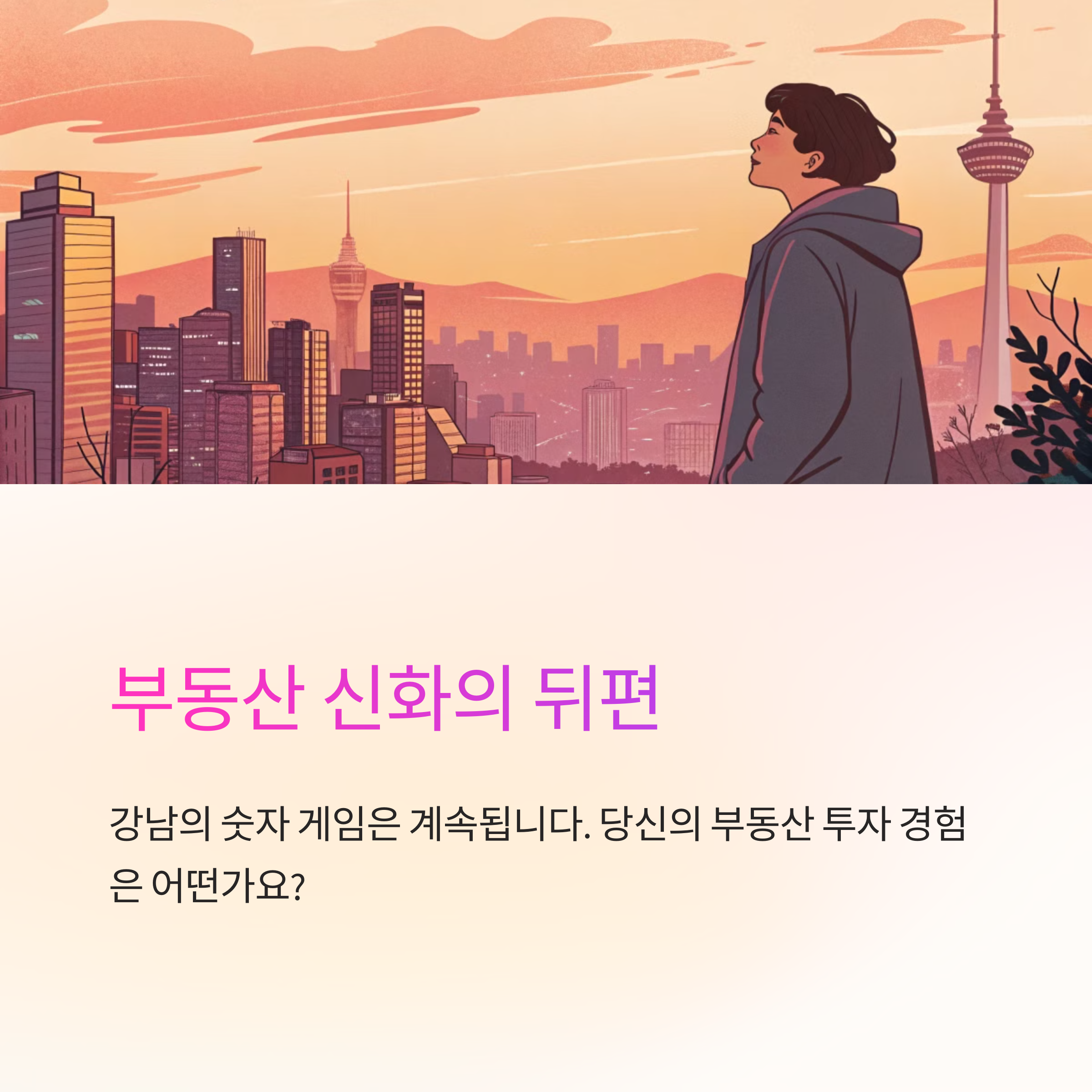 그 역시 한때 강남 아파트를 가지고 싶었다. 이름만 들어도 알만한 아파트를, 사람들 사이에서 인정받는 집을. 하지만 이번 상승과 규제의 흐름을 보면서 그는 조금 다른 생각을 하게 되었다. 가격은 오르내리지만, 결국 중요한 건 자신이 그 공간에서 어떤 시간을 살고 싶은가였다. 그저 자산으로서가 아닌, 삶의 배경으로서의 집.