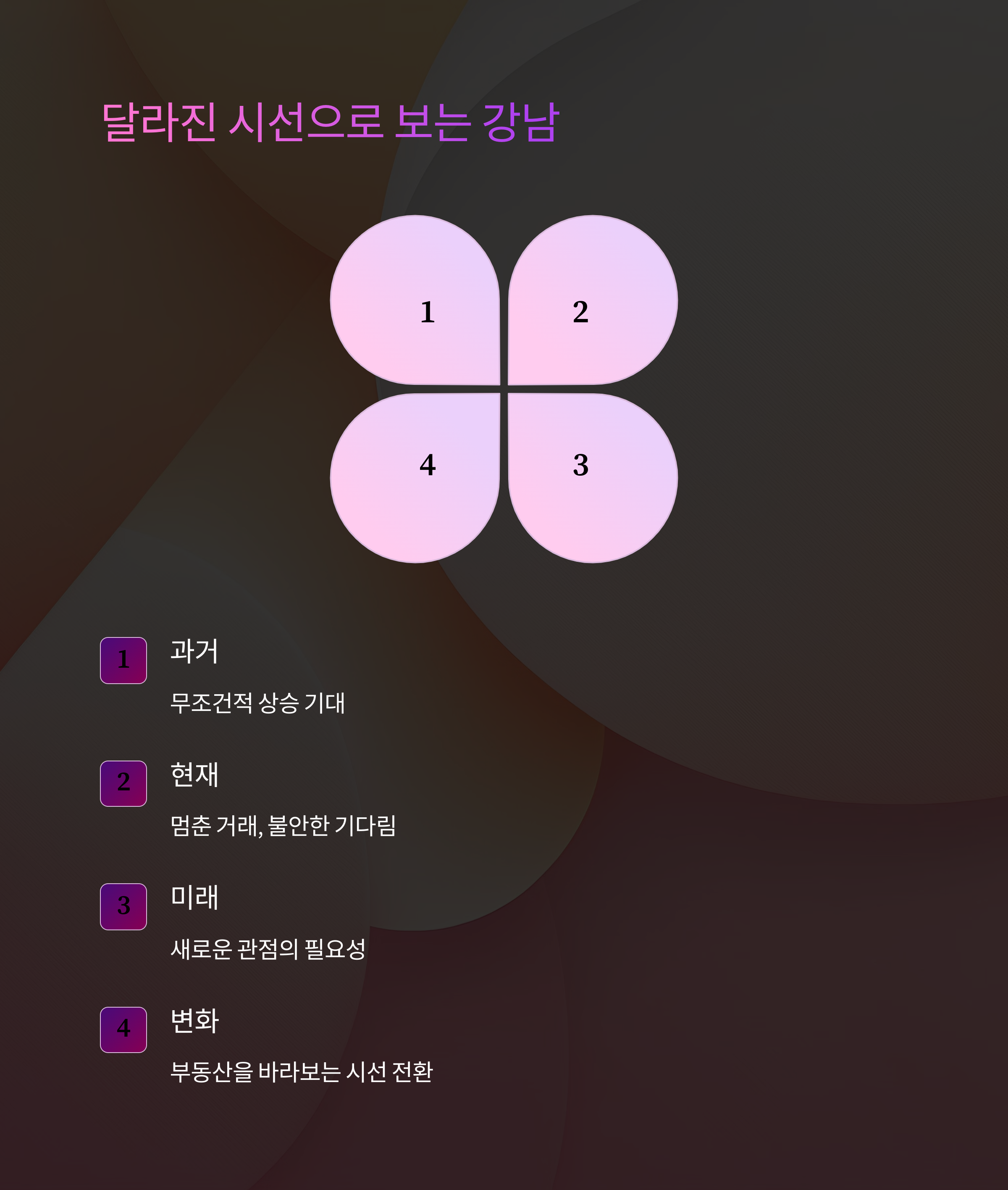 중장기적으로 봤을 때, 전문가들은 강남 부동산 시장의 가격이 하락보다는 정체, 그리고 다시 완만한 상승으로 이어질 가능성이 높다고 본다. 핵심 인프라, 학군, 교통, 브랜드 단지. 이런 요인들은 규제 하나로 무너지지 않는다. 오히려 거래가 막히는 동안 공급이 줄고, 다시 거래가 풀릴 때 ‘잠겨 있던 수요’가 폭발하는 현상이 반복돼 왔다. 그렇게 강남은 몇 번의 파동 속에서도 꺾이지 않았고, 여전히 부동산 시장의 중심으로 남아 있다.