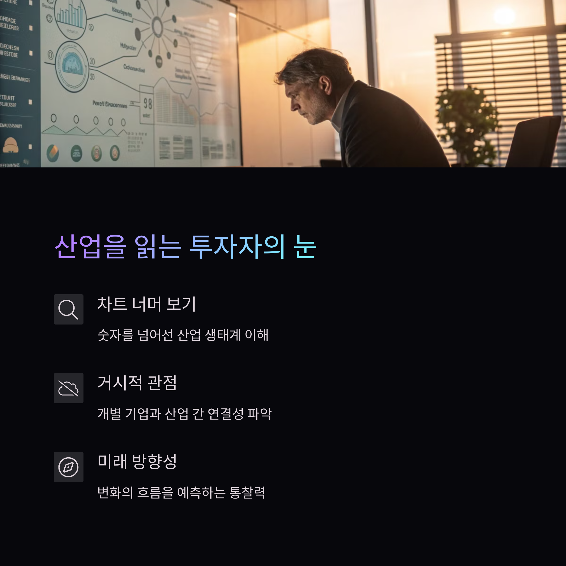 그는 이제 차트를 보지 않는다, 대신 산업을 읽기 시작했다